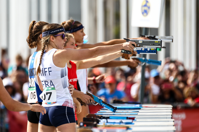 Behind her, there was a huge clamour for the podium and it was Gulyas (HUN) who exited the range for the final time in 2nd place, with Rinaudo (ITA), Heredia (ESP) and Riff (FRA) all in close pursuit. But it was Riff (FRA) who proved to have the strongest legs.