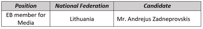 According to Articles 5.4 and 5.5 of UIPM Election Rules, the following candidates nominated by their National Federations and checked by the UIPM Electoral Committee are eligible for the elections to be held during the UIPM 2021 Congress: