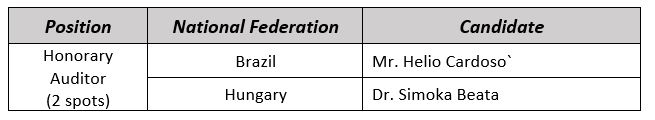 According to Articles 5.4 and 5.5 of UIPM Election Rules, the following candidates nominated by their National Federations and checked by the UIPM Electoral Committee are eligible for the elections to be held during the UIPM 2021 Congress: