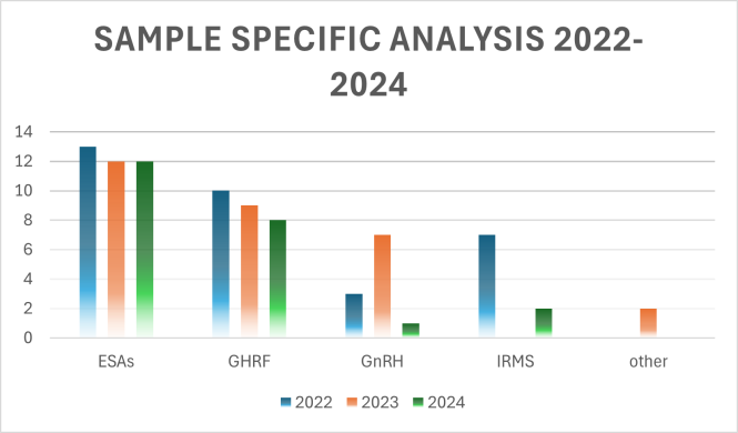 As per TDSSA, the required share of specific analysis for HGrH and ESAs are 5%. UIPM fulfils in 2022 this requirement with 5,3% of HGrH and 6,4% of ESAs.