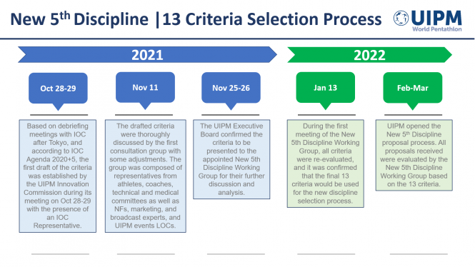 - Q4: Ratification phase (discipline approval by the UIPM Congress and further submission to IOC)