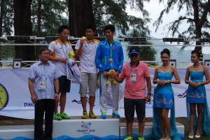 DSC_1201Immediately after the Men’s Individual race the women took centre stage on Nai Yang Beach and China, a little disappointed to be upstaged by Korea in the earlier event, secured fully-deserved gold and silver medals with Huo Qi hitting the finish line first, 22 seconds ahead of compatriot Bian Yufei, who won silver. Only eight seconds behind Bian, in a major surprise, came Valeriia Uvarova of Kyrgyzstan who won a spectacular bronze medal for her country.
