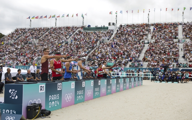 An exhilarating opening day of competition at the Palace of Versailles ended with 18 remarkable athletes reaching the Men’s Final at the Paris 2024 Olympic Games.