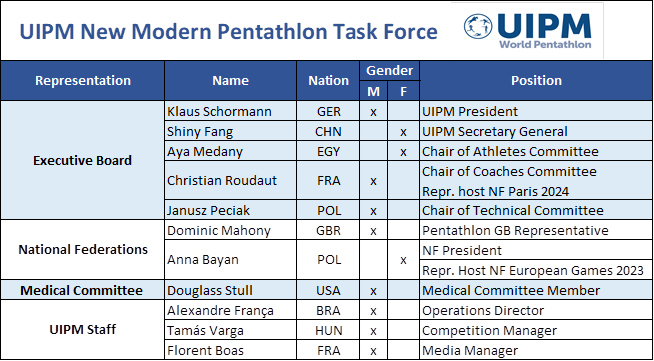 The UIPM President, Dr Klaus Schormann, has appointed a 12-strong task force to finalise the new Modern Pentathlon format designed for the Olympic Summer Games Paris 2024.