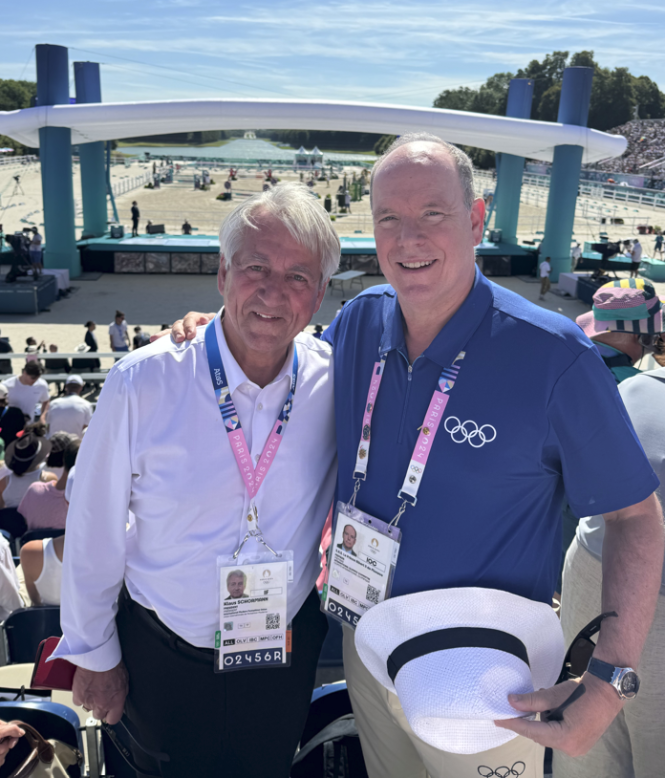 Among the spectators at the Women’s Final on August 11 – won by world record-breaker Michelle Gulyas of Hungary with Elodie Clouvel delivering silver for host nation France and 21-year-old world champion Seungmin Seong of Korea claiming bronze – were International Olympic Committee (IOC) President Dr Thomas Bach, IOC Vice President Juan Antonio Samaranch Jr and IOC Member HSH Prince Albert II of Monaco.