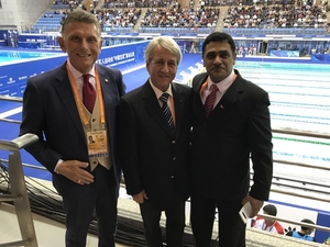 At the Swimming pool in Wuhan he met with CISM Honorary President, Maj Gen Dr Gianni Gola (ITA) and former CISM President Col Abdulhakim Al-Shino (BRN).