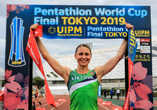Laura Asadauskaite (LTU) celebrates victory in the Olympic test event, UIPM 2019 Pentathlon World Cup Final