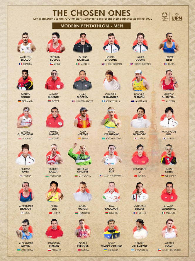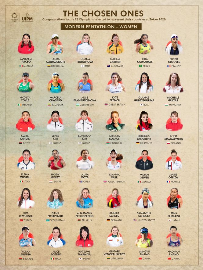 The 72 athletes who will compete in Modern Pentathlon at the rescheduled Tokyo 2020 Olympic Games have been named by the Union Internationale de Pentathlon Moderne (UIPM).