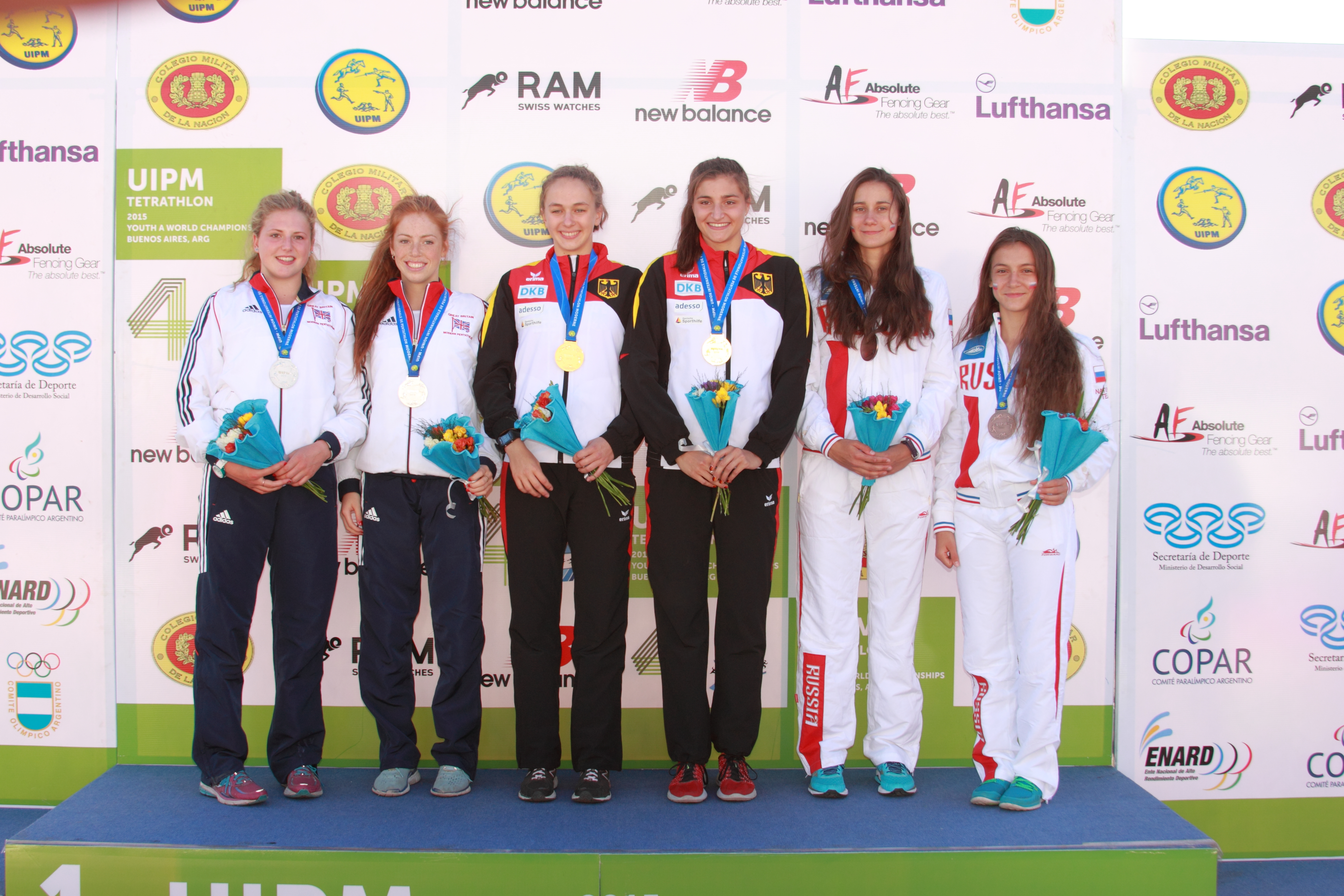 But the Russians grasped control of the competition with a blistering performance in the pool, finishing first in 1.51.03. Hosts Argentina swam second with the Czech Republic men in third in 1.55.69, a hair in front of the Egyptians in 1.55.72. Korea, who had taken both silver and bronze in the Men's individual event on Saturday finally showed their class to finish first in the combined in 10.21, however Russia were just behind in second and it was enough to seal gold ahead of the Czechs, Egyptians and the unlucky Koreans, who were pipped to bronze. Meanwhile Germany withstood a ferocious late fightback from both Great Britain and Russia to claim gold in the Women's Team Relay, finishing seven points clear of the field in the Argentine capital. The Germans had raced out in front with a dominant display in the Fencing, claiming 33 victories out of 48. In keeping with how the contest would pan out, the British were close behind with 31 victories and Russia back in fifth with just 23. Russia roared back in the pool to take first place in a time of 2.03.47 with Germany and Britain back in fifth and sixth respectively. A spirited challenge from both rivals in the Combined event looked like it may knock the Germans off top spot when the British team finished first in 12.19 with the Russians just a second back. However Germany held firm to take fifth place in the Combined and the gold medal. Britain took silver and Russia bronze.