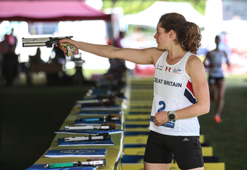 The 3rd visit to the shooting range was the moment the initiative changed hands, as French (GBR) took advantage of a sticky shoot by Coyle (IRL) to move into pole position. Thereafter the main excitement surrounded the battle for bronze, which seemed destined to be settled by the Olympic champion after her impressive win at World Cup Kecksemet.