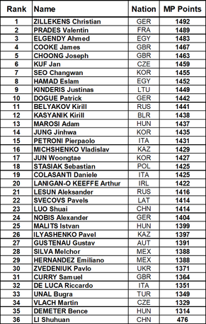 Zillekens (GER), who was a UIPM world youth champion in Wuhan (CHN) in 2013, said: “I cannot believe it. I started the Laser Run in 4th place and I would have been happy with this place in the end.