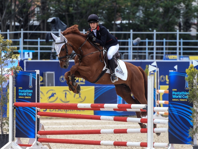 For the second successive Pentathlon World Cup, Ozyuksel (TUR) achieved a perfect score of 300 in Riding and her clean round was applauded loudly by an excited crowd.