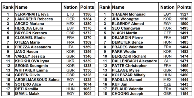 The importance of the Fencing Ranking Round was underlined in the make-up of the leaderboard after two disciplines, as Oteiza (FRA), Serapinaite (LTU) and Clouvel (FRA) all managed 21 victories, only overshadowed by Reti (HUN) who scored 24V/11D.