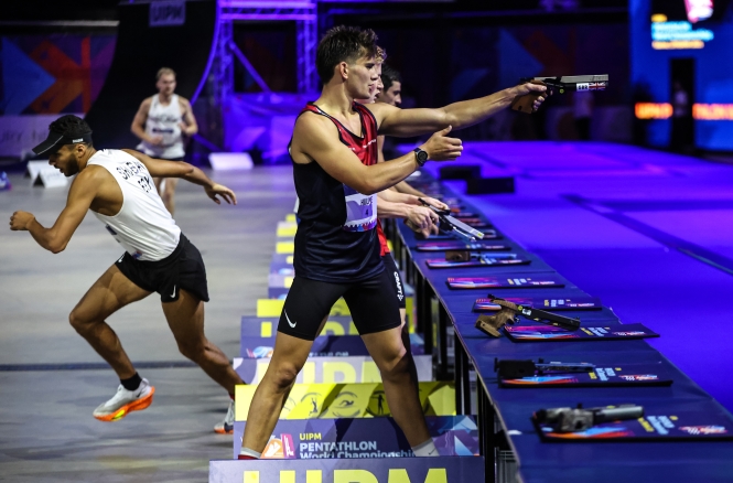 Mathis Rochat (FRA) won Fencing, defeating Miklos Rieger of Germany in the final bout. After a double fall resulted in Obstacle world record-holder Mohamed El Ashqar (EGY) twisting his knee and failing to finish, Salomo (ESP) set the fastest Obstacle time of 25.45sec ahead of Matteo Bovenzi (ITA) in 26.71 – who then stormed through Swimming in 1:54.71. Reigning world champion Csaba Bohm (HUN), having also been eliminated in Obstacle, set the fastest Laser Run time of 10:14.63.