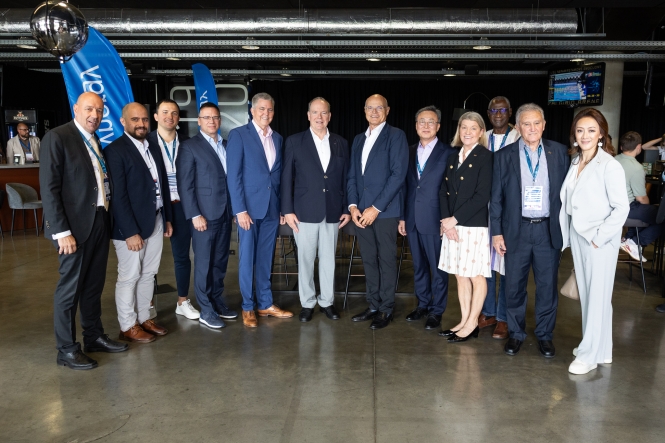 Pictured with UIPM Executive Board Members in Kaunas, Lithuania: IOC Member Balazs Furjes (4th from left), UIPM President Rob Stull (5th from left), UIPM Honorary President and IOC Member HSH Prince Albert II of Monaco (6th from left), and IOC Member Karl Stoss (6th from right)