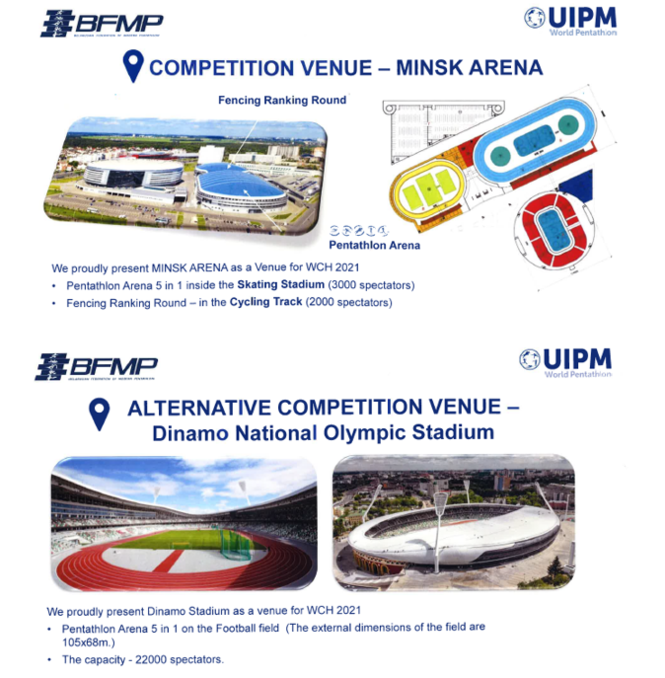 The Dinamo National Olympic Stadium (above) and the Minsk Arena (right) are both possible venues for Minsk (BLR) to stage the UIPM 2021 Pentathlon and Laser Run World Championships (see detailed competition venues proposal below)