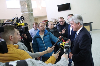 Mihail Prokopenko, Chairman of the Belarus Federation of Modern Pentathlon who is also Head of Sport in Minsk, joined Minister of Sport and Tourism Sergey Kovalchuk to brief the UIPM President about the flagship UIPM competition, where athletes will have their last chance to qualify automatically for the Tokyo 2020 Olympic Games in 2021.