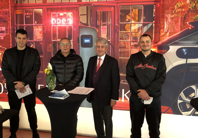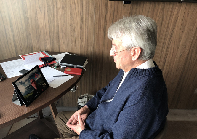 UIPM President Dr Klaus Schormann in a video conference with Olaf Kleidon (President of Bavarian Modern Pentathlon) and meets in his office in Darmstadt (GER) with Dr Christian Funke and Volker Senssfelder of Source for Alpha AG