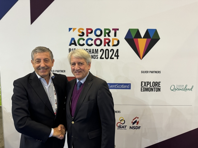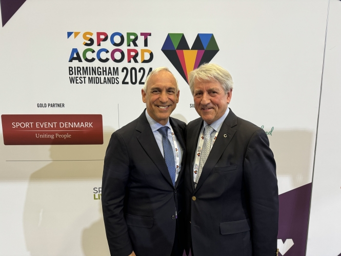 President Perurena, with IWGA CEO Joachim Gossow, explained the possibilities of an entrance through direct contact with the new host city after its election in May 2024, whereby the host city would have the capacity to decide some of the sports on the programme.