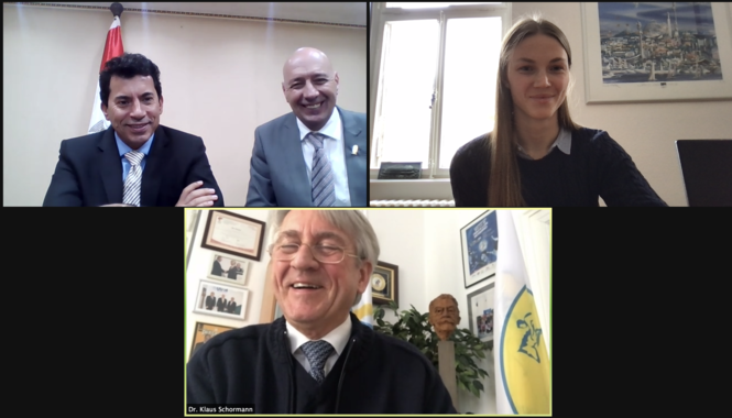 Dr Schormann was joined by Egyptian Modern Pentathlon Federation President Sharif Elerian in a video conference with Egypt’s Minister of Youth and Sport, Dr Ashraf Soby, about the UIPM 2021 World Championships (Senior, Junior and U19/U17) all taking place in Egypt.