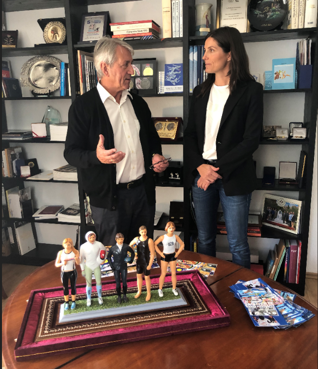 The UIPM President met with Dr Sandra Heck in his office to discuss articles she published about Modern Pentathlon in various brochures, magazines and newspapers based on academic research spanning from ancient times to the present day. In 2013 she published the book Von spielenden Soldaten und kämpfenden Athleten (Of Soldiers Playing and Athletes Fighting).
