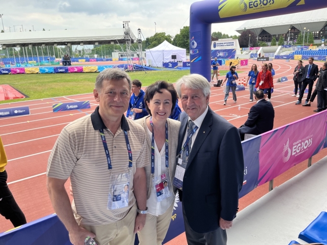 During his stay in Krakow, UIPM President attended various sport competitions where he met their representatives to discuss matters of sporting politics during this challenging time of military conflict in Ukraine and post-pandemic recovery. He discussed with EOC President Spyros Capralos the importance of the Games in a member nation of the European Union. The Games connected people, generations and whole nations in Europe.